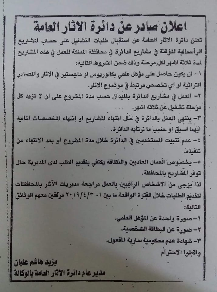 مطلوب شباب للعمل في السلط على حساب مشاريع الاثار