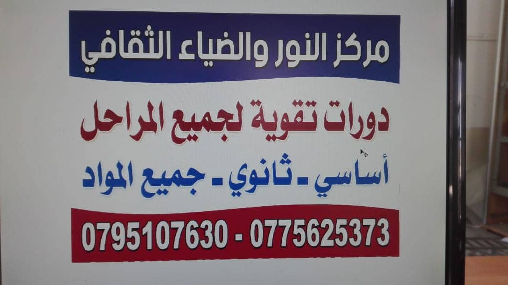 يعلن مركز النور و الضياء الثقافي عن بدء التسجيل لدورات العام الدراسي الجديد 2019 / 2020 والذي يضم كوكبة من المعلمين المتمييزين ذو الخبرة في المرحلة الثانوية محمود العزة رياضيات علمي