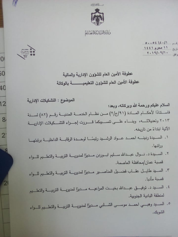 حصلت " البلقاء اليوم " على قائمة التنقلات لمدراء التربية والتعليم