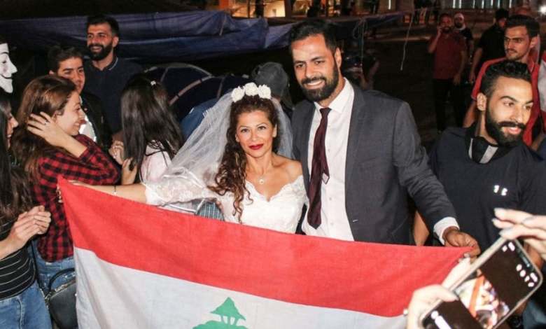 وسط ساحة رياض الصلح في بيروت، الاسم الذي بات متداولاً في وسائل الإعلام العربية والعالمية كلما تطرقت للتظاهرات التي يشهدها لبنان منذ 17 أكتوبر، تنديداً بالأوضاع المعيشية، وطلباً لرحيل الطبقة الحاكمة، احتفلت الشابة اللبنانية، ملاك علوية، صاحبة فيديو الركلة الشهيرة لأحد مرافقي وزير لبناني، بزواجها على الشاب محمد في ساحة رياض الصلح بوسط بيروت.