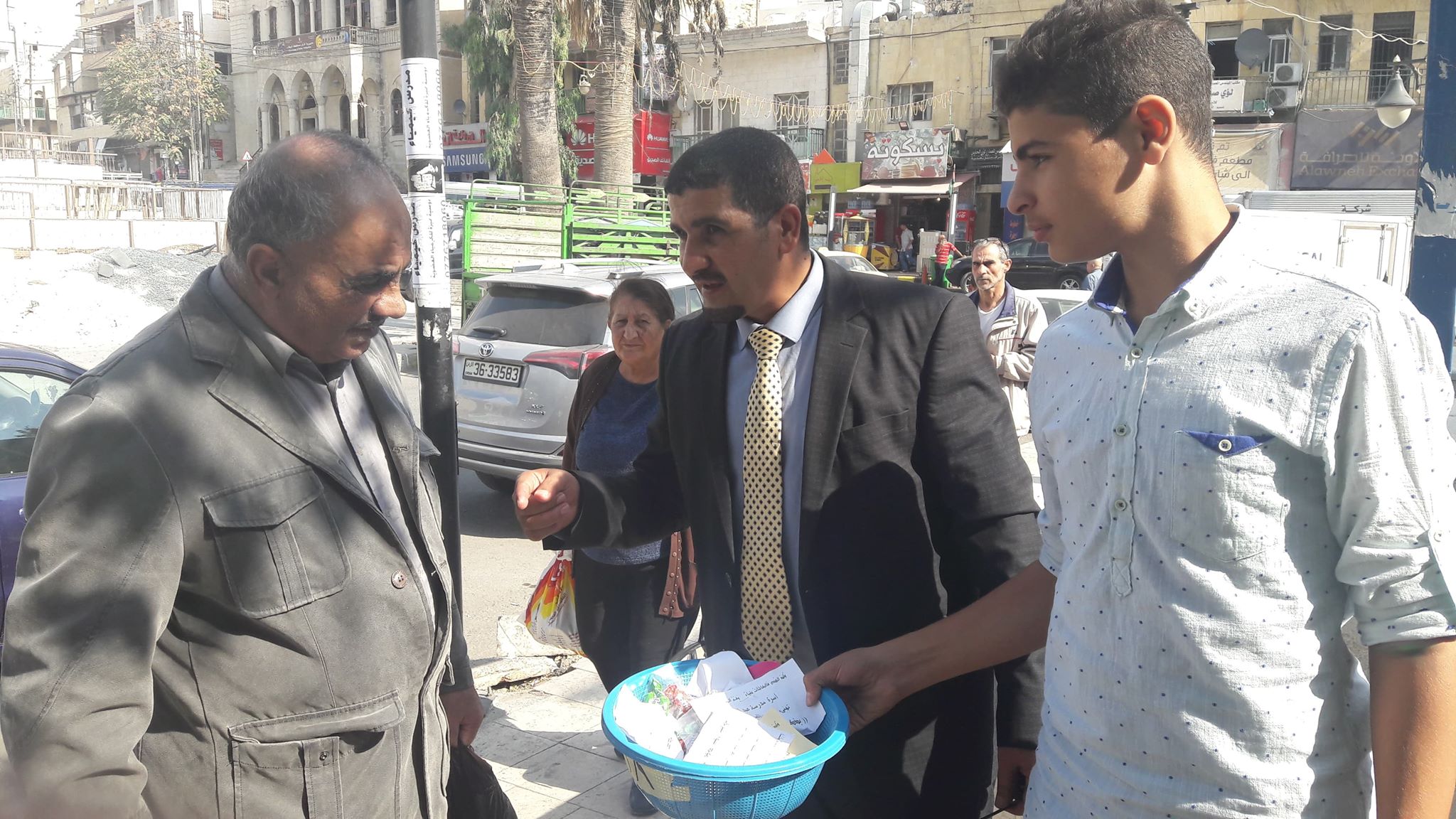 احتفاءا بعيد المولد النبوي الشريف وزع طلاب مدرسة عبد الحليم النمر صباح اليوم الحلوى على الموظفين في محافظة البلقاء والامن العام والمواطنين