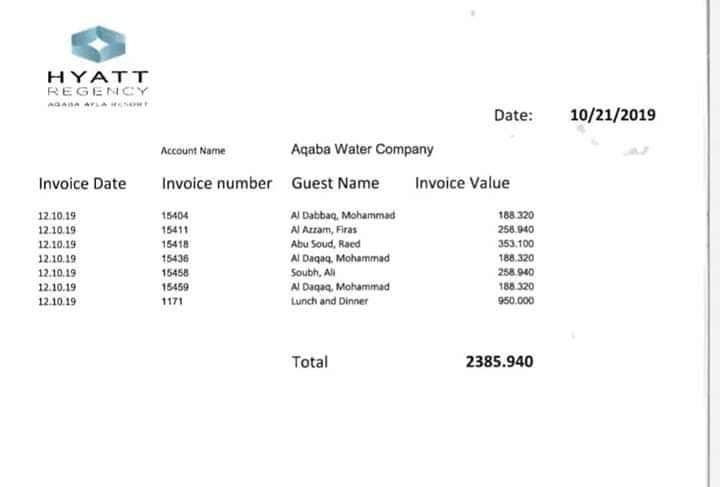 موضحة ان الشركة وجهت دعوة روتينية للوزير والامين العام ونائب الامين وعدد من المعنيين حيث استمرت الاقامة لمدة ثلاثة ايام شملت الاطلاع على استراتيجية الشركة للسنوات القادمة والمشاريع التي تنفذها حاليا و ستنفذها وشملت كذلك جولة على المشاريع والسدود ومشاريع الحصاد المائي في وادي عربة ومشروع الديسي ومشروع توسعة محطة الصرف الصحي / العقبة الذي يشوبه بعض المعيقات ومحطة التحلية في العقبة اضافة الى زيارة والاطلاع على موقع وسيناريوهات الناقل الوطني المزمع السير بتنفيذه.