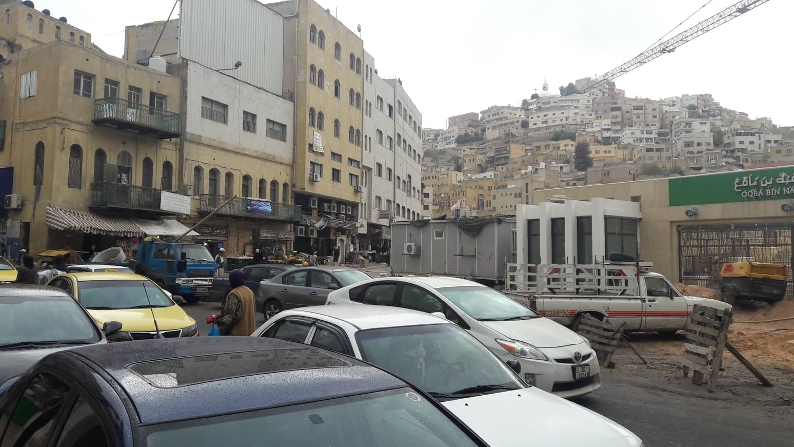أول الغيث قطرة .. السلط .. المياة تداهم محلات تجارية بشارع البلدية السفلي بعد تبليطه