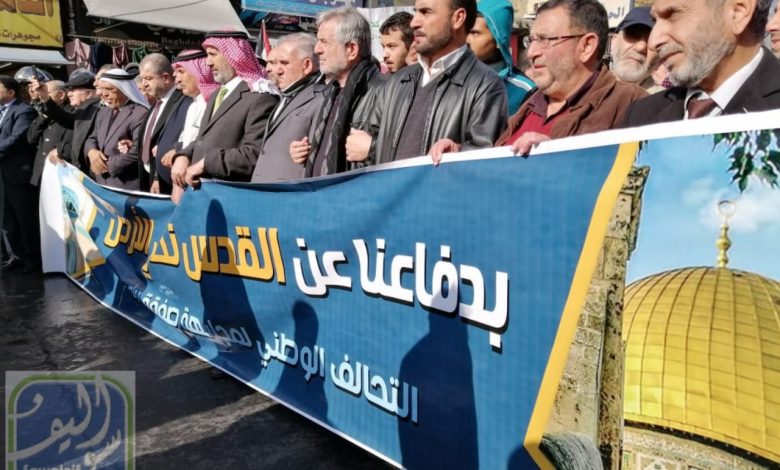وكان التحالف الوطني لمجابهة صفقة القرن قد دعا للمسيرة في ذكرى “إعلان ترامب المشؤوم لتزوير هوية القدس” تحت عنوان “بدفاعنا عن القدس نحمي الأردن”.