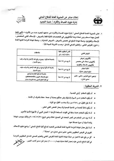 اعلان تجنيد صادر عن المديرية العامة للدفاع المدني