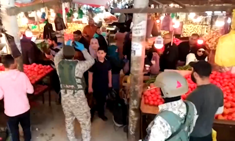 تدخلت القوات المسلحة الاردنية الجيش العربي لضبط حركة المواطنين وتنظيم الدور في حسبة الخضار والفواكة وسط مدينة اربد.