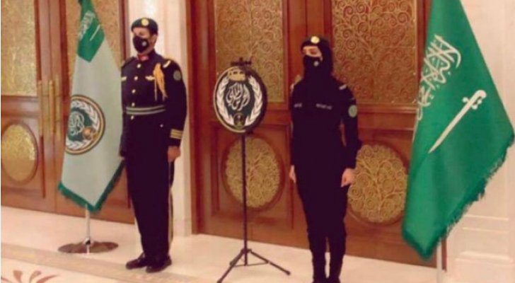 : تداول ناشطون على وسائط التواصل الاجتماعي، صورة لامرأة ترتدي زي الحرس الملكي السعودي وتقف بجانب العلم الخاص بالقوة العسكرية المسؤولة عن حماية كبار قادة البلاد (الحرس الملكي)، أثارت جدلا كبيرا على مواقع التواصل الاجتماعي.
