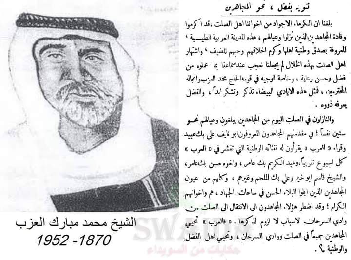 للأمانة والواجب اتجاه من قدموا وساندوا أهلنا في أصعب الظروف والتعريف بهم - والكلام بمبادرة من الاستاذ مروان أبو خير - فمن أهالي مدينة السلط الكرام وعلى رأسهم الشيخ محمد العزب الذي كانت له مساعي وأيادي بيضاء في انتقال أجدادنا واستضافتهم حسب عادات أهل الكرم والوطنية فوجب التنويه لهذه القامة الوطنية .