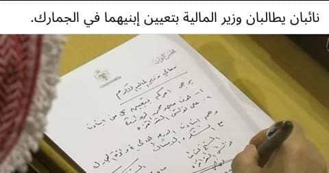 بعد موجة التفاعل التي شهدتها منصات التواصل الإجتماعي الأردني اليوم الأربعاء في ضوء الصورة التي تم تداولها لطلب النائبين ماجد الرواشدة و نواش القواقزة تعيين نجليهما في دائرة الجمارك، نفى النائب الرواشدة قيامه بالطلب من وزير المالية توظيف ابنه.