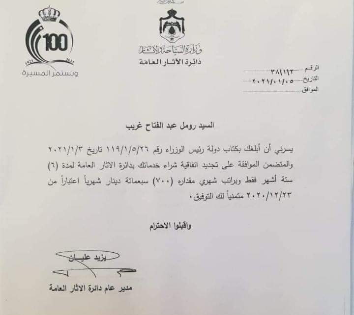 أعادت حكومة الدكتور بشر الخصاونة شراء خدمات مدير آثار الزرقاء رومل عبدالفتاح غريب ، بعد ان انتهى عقد شراء خدماته والذي انتهى اواخر عام 2020 ، حيث أحيل غريب على التقاعد في منتصف عام 2019 في عهد حكومة الدكتور عمر الرزاز وتم شراء خدماته براتب 1000 دينار لمدة عام .