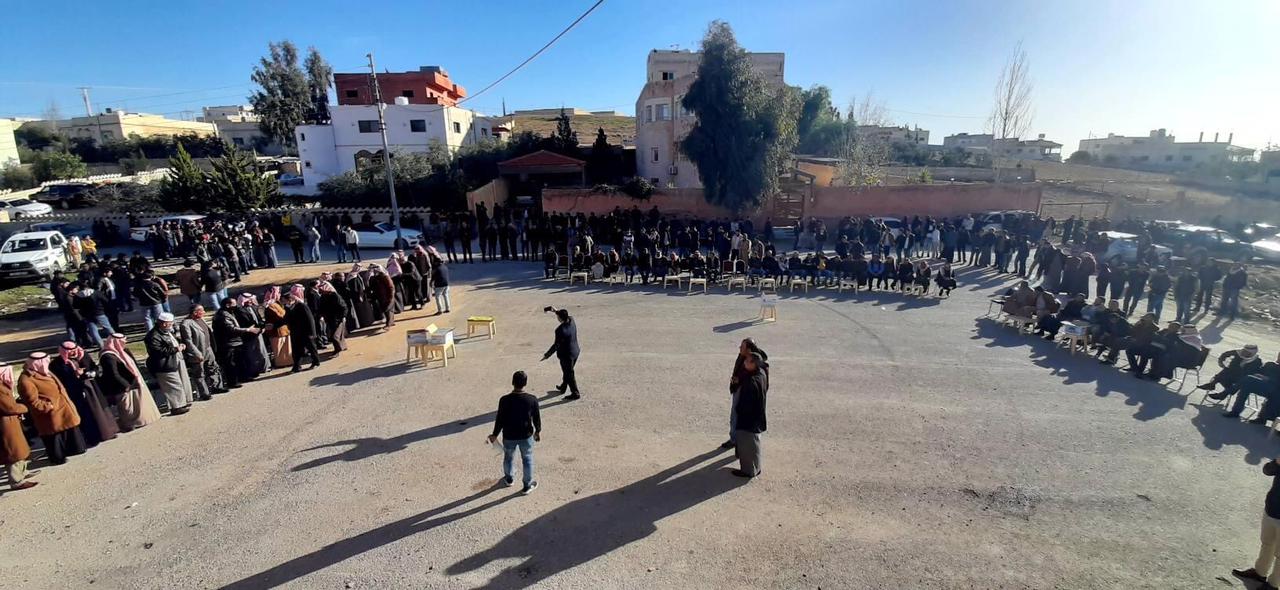 اجتمع عدد كبير من ابناء قبيلة بني صخر في قرية الذهيبة “البادية الوسطى” وذلك لبحث تداعيات مقتل الشاب حمزة مطلق الجحاوشة بني صخر .