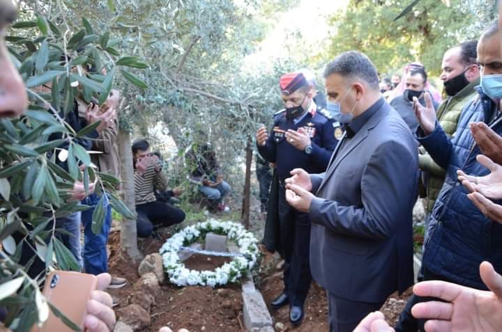 ونقل العميد المعايطة احر التعازي والمواساة لذوي الفقيد باسم عطوفة مدير الامن العام وكافة منتسبي الجهاز وتم وضع اكليل من الزهور على ضريح الفقيد .