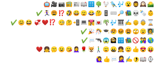 ولكن انتبه، فالبساطة لا تعني الاستهتار باختيار الإيموجيز؛ لأنها ستُفقدك مصداقيتك مع الوقت، وستؤدي بك لنشر آراء وعواطف سطحية وكاذبة على منصات التواصل الاجتماعي التي نستلهم منها جميع أفكارنا ومشاعرنا. وإياك ثم إياك الاستسلام والعودة إلى كتابة الجمل واستعمال علامات الترقيم، لأنها قد تكشف من تعانيه من جفاف عاطفي أو خلل اجتماعي، وبالتالي عدم إمكانية الوثوق بك بغض النظر عما تكتبه. كل ما عليك فعله هو التحلي بذوق رفيع في تركيب إيموجياتك، لذا، كن حذراً وانتقائياً في التعبير؛ فـ :heart_eyes: تُظهر إعجابك بالشخص، أما إذا أضفت لها:+1: فهذا يعني إعجابك بما قاله الشخص. واستخدام الكلام مع الإيموجيز أمر شائك أيضاً؛ فعندما ترسل لحبيبتك سمر “شكراً” يليها :slightly_smiling_face: تكون بالفعل جحشاً غبياً كما سبق وأخبرتك، وتستحق الـ :face_with_symbols_on_mouth: التي أرسلتها لك، لأنك ترسل الـ :slightly_smiling_face: لصديقك الأزعر علاء الأزعر كي تقول له: لعنة الله عليك يا كلب، أما الـ:rose:فترسلها لخالتك منال رداً على تمنياتها لك بجمعة مباركة، بينما ترسل الـ:kissing_heart: أو :wink: لسوسن التي تواعدها بالسر، يا تافه. سمر يجب أن ترسل لها :heart:.
