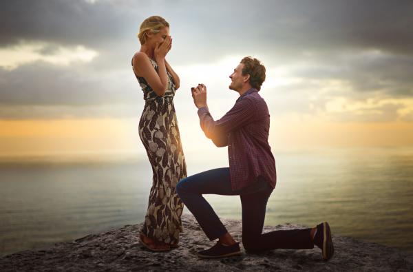 وجثا كوينتين على ركبة واحدة، فيما أزالت آشلي عصابة عينيها، ثم قدم لها محبس الخطوبة، وطلب الزواج منها أمام الحشود.