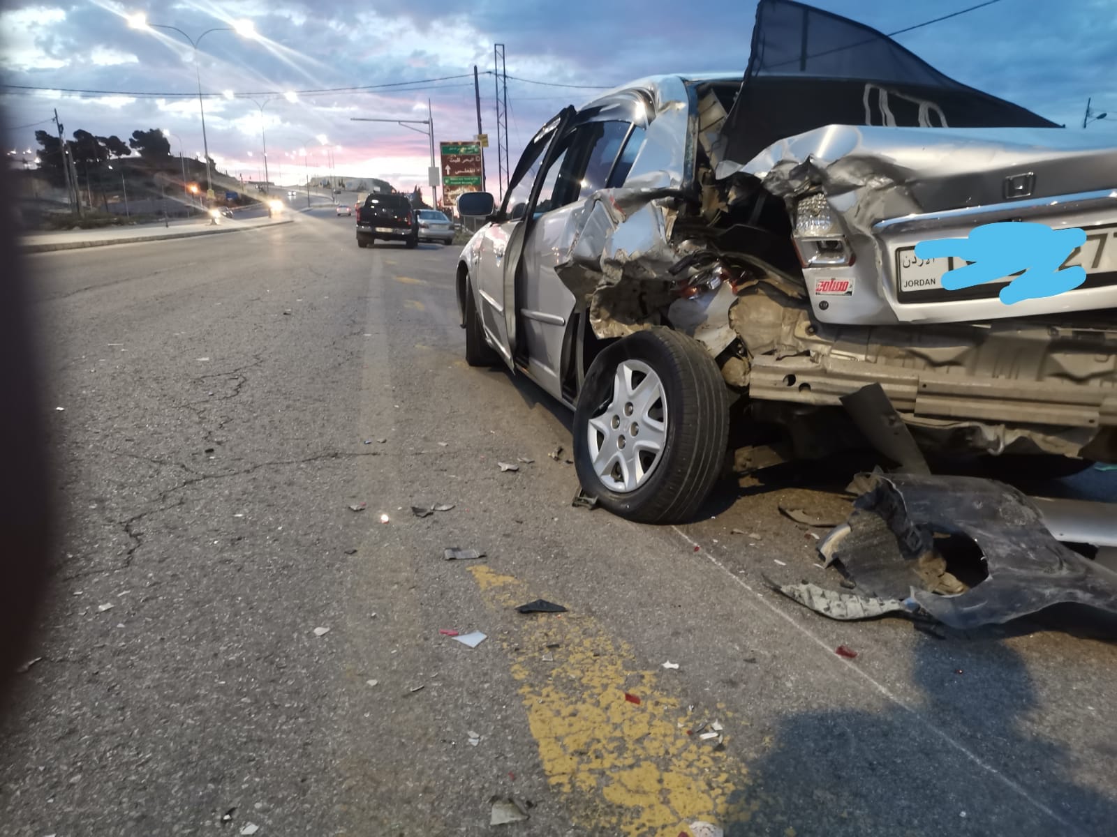 وقع حادث تصادم بين سيارة وبكب على شارع الستين / السلط بالقرب من قصر دولة المهندس علي ابو الراغب