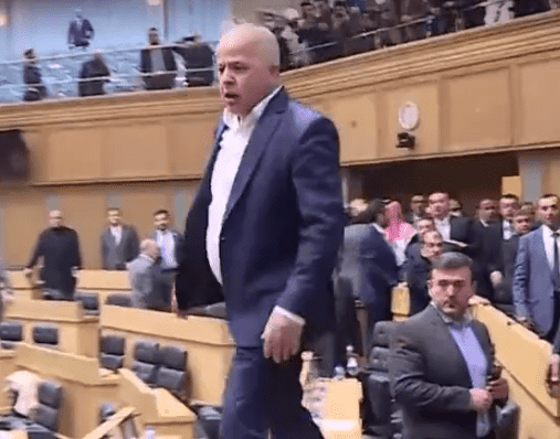 ظهر النائب عبدالرحمن العوايشة في فيديوهات تحت قبة مجلس النواب وهو يصعد على طاولة مخصص للنواب مهدداً أحدهم دون أن يذكر أسمه.