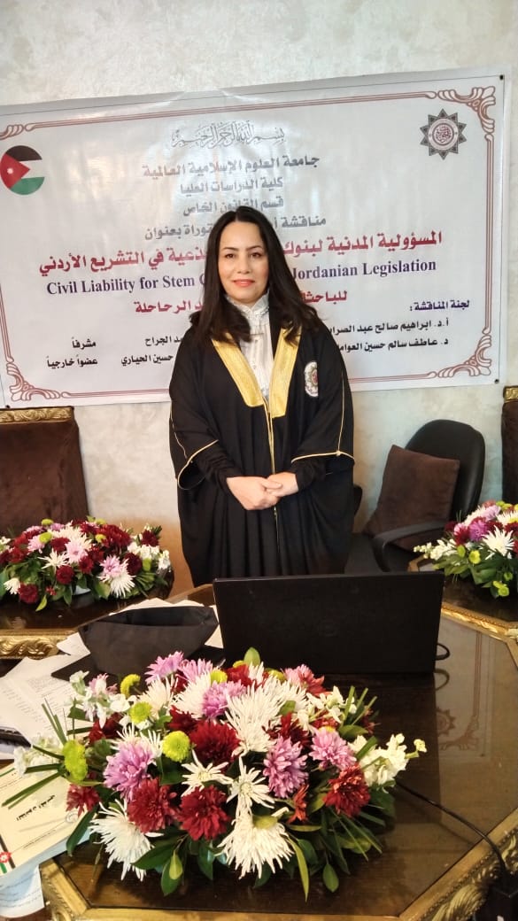 وذلك بمناسبة حصولها على درجة الدكتوراه في القانون الخاص من جامعة العلوم الإسلامية