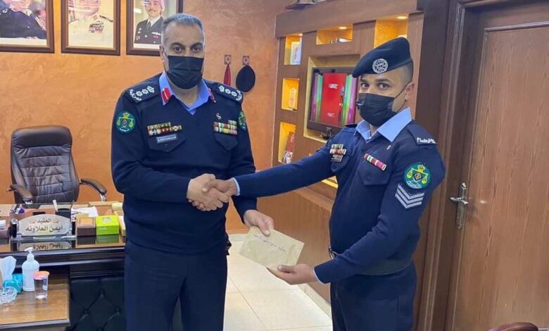 كرم مدير شرطة محافظة المفرق العقيد أيمن العلاونة، أحد مرتباته لما قدمه من تضحية أثناء محاولته ثني مواطنة عن الانتحار.