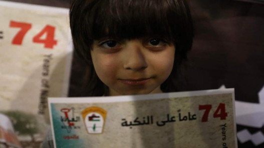 تصادف الذكرى 74 لنكبة فلسطين، الأحد، 15 آيار/ مايو، التي شردت في عام 1948 أكثر من 800 ألف فلسطيني، حيث احتل الاحتلال الإسرائيلي في مرحلة النكبة 774 قرية ومدينة فلسطينية، بعد أن دمر 531 بالكامل، وأخضع ما تبقى لقوانينه، مرتكبا نحو 70 مجزرة استشهد فيها أكثر من 15 ألف فلسطيني.