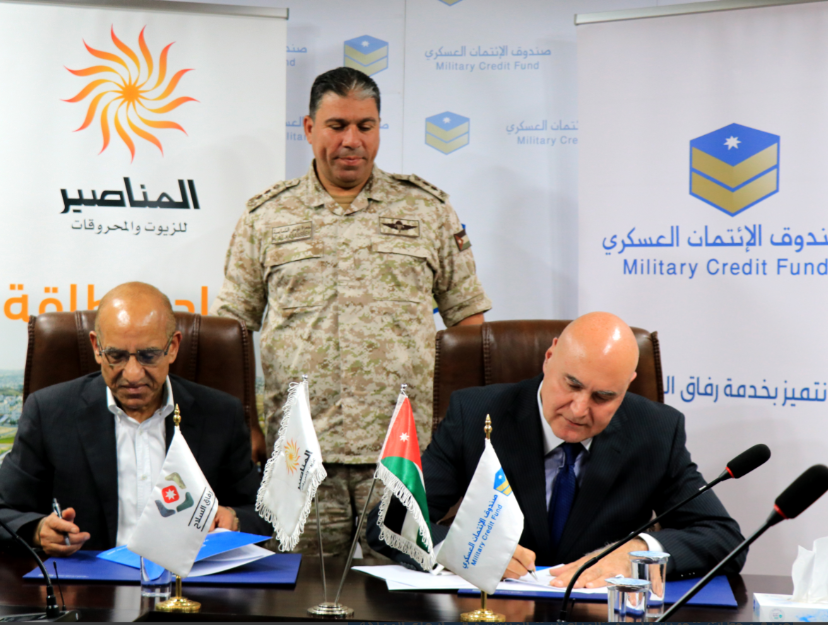 - استمراراً للتوجيهات الملكية السامية والرامية الى أهمية التشاركية بين القطاعين العام والخاص بما يخدم ويخفف من الأعباء المعيشية على رفاق السلاح، وقع صندوق الائتمان العسكري مع شركة تسويق المنتجات البترولية الأردنية (جوبترول) وشركة الأردنية الحديثة لخدمات الزيوت والمحروقات (المناصير للزيوت والمحروقات) اتفاقية تعاون ضمن برنامج العروض التجارية والخدمة تحت مظلة مبادرة رفاق السلاح