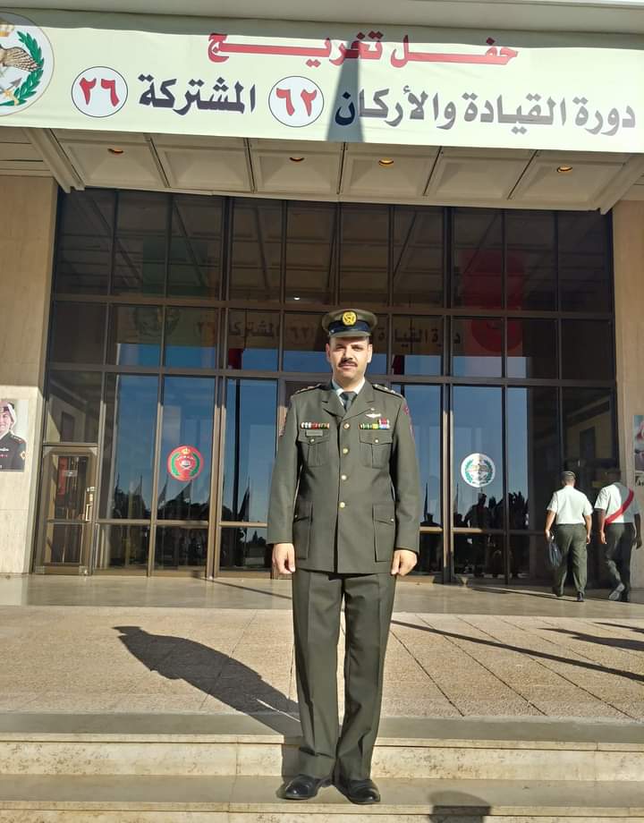 بمناسبة تخرجه من كلية القياده والأركان الملكية الٱردنية، وحصوله على "درجة البكالوريوس في العلوم العسكرية" و لقب " ركن " في القوات المسلحة الأردنية متمنيين له التقدم والنجاح في ظل حضرة صاحب الجلالة