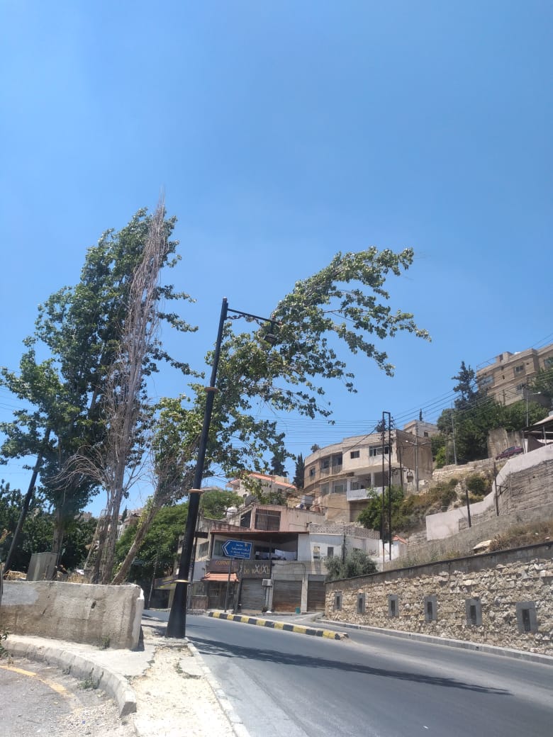 تسببت الرياح ظهر اليوم بسقوط شجرة على احد اعمدة الكهرباء بمنطقة دوار المحباصية "/ السلط