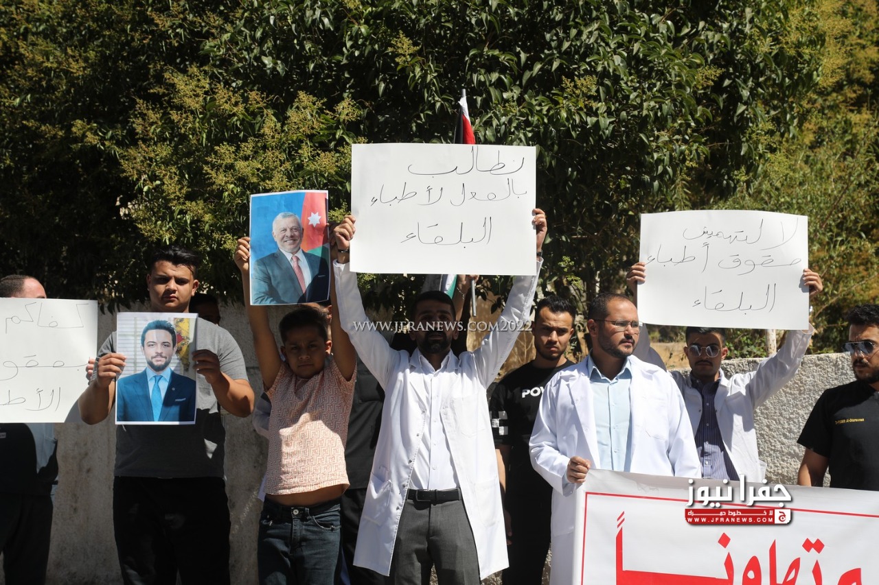 أطباء "البلقاء" يعتصمون ويلوحون بالتصعيد حال عدم الإستجابة لمطالبهم بالتعيين - صور