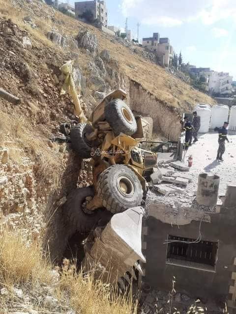تسبب تدهور جرافة وسقوطها الى الحاق اضرار بالغة بأحد المنازل الواقعة في حي نقب الدبور / احد احياء مدينة السلط