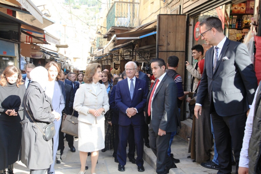 زار جلالة الملك كارل السادس عشر غوستاف، ملك مملكة السويد وجلالة الملكة سيلفيا، ملكة السويد، اليوم الأربعاء، مدينة السلط، واطلعا على معالم المدينة التراثية والسياحية.