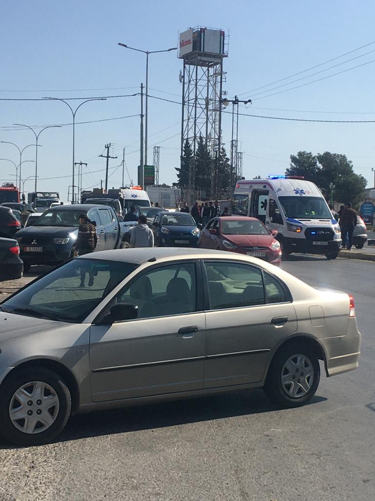 اصيب مواطن برضوض خلال سلسله من الحوادث التي وقعت ظهر اليوم بالقرب من مجمع الدوائر الحكومية / مجمع المناصير / السلط