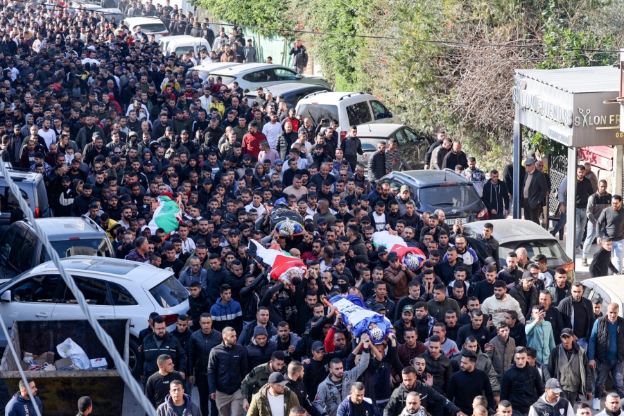 انطلق عشرات الآلاف من الفلسطينيين في جنين، اليوم الخميس، في موكب جنائزي مهيب لتشييع جثامين مجزرة جنين ومخيمها.