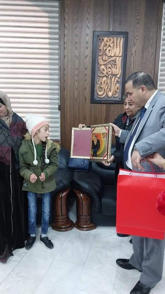 كرّم محافظ البلقاء الدكتور فراس أبو قاعود الطفلة راما الزعبي بمناسبة إجتيازها المرحلة الاولى بمبادرة تحدي القراءة ومعلمتها شيرين الزعبي .
