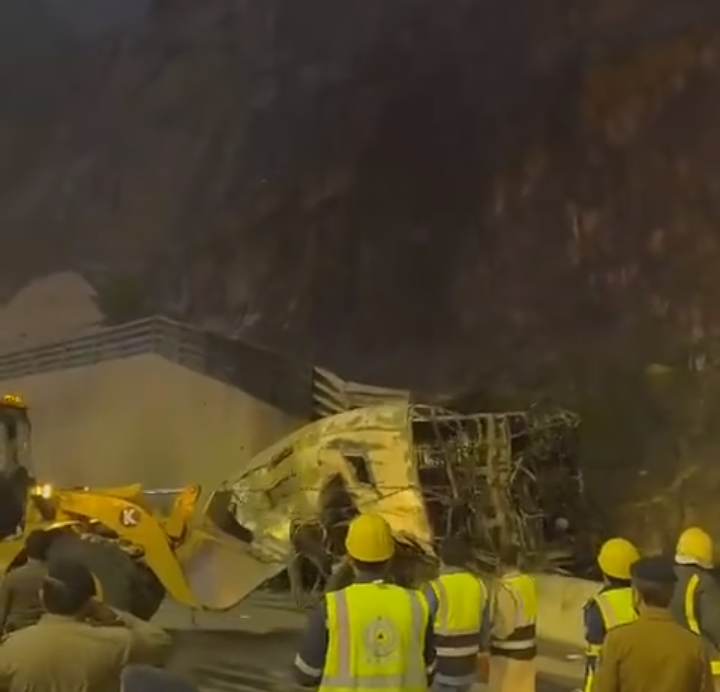 وفاة 20 شخصا وإصابة 29 في حادث سير لحافلة تقل معتمرين في عقبة شعار شمال عسير نتيجة اصطدام حافلة بأحد الجسور