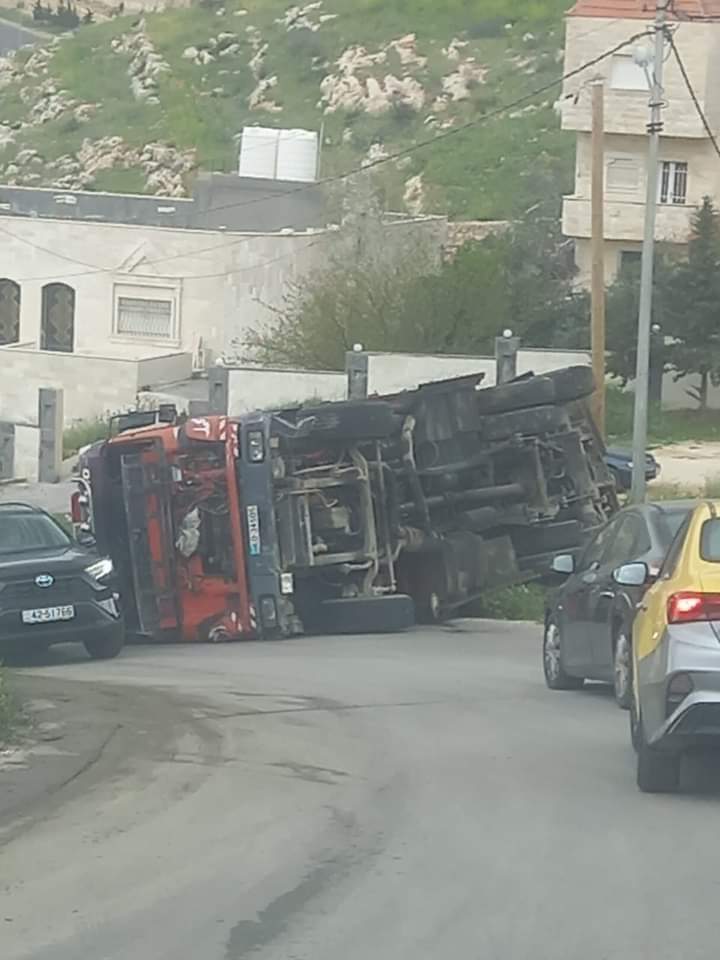 وقع حادث تدهور لقلاب ظهر اليوم على شارع الستين / السلط بالقرب من مضافة الدرادكة