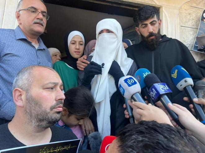 وقالت خلال مؤتمر صحفي لها أمام منزله في عرابة جنوب جنين "نزف لكم خبر استشهاد للشيخ هو فخرنا واعتزازنا رغم أننا كنا نود أن يعود لنا منتصراً، محملةً كل مقصر بالقول "سنحاسب كل مقصر، وخاصة أن الشيخ عدنان تُرك وحيداً".