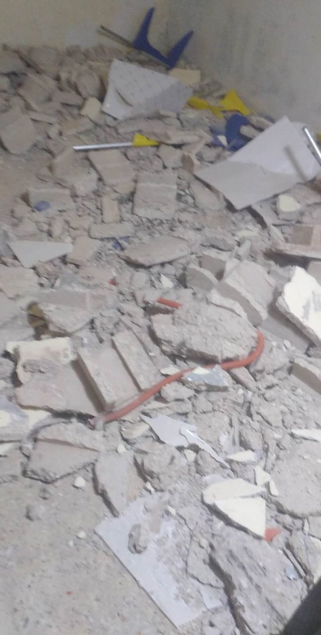 سقوط سقف منزل مكون من طابقين على عائلة مكونة من خمسة أفراد قرب مدارس الزبن في مخيم البقعة / لواء عين الباشا ليله امس
