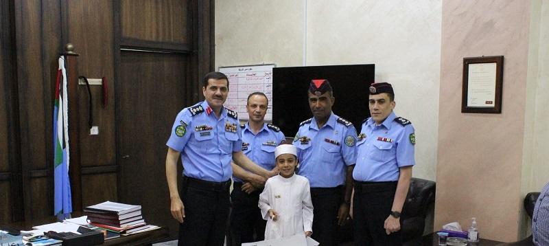 كرَّم مدير شرطة غرب إربد العقيد رعد الحديدي، الطفل عمر العامري، الحاصل على المركز الخامس بالمسابقة الهاشمية لحفظ القرآن الكريم، وهو أحد طلبة الصف الثالث في مدرسة وقاص الأساسية المختلطة.