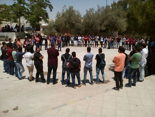 علق طلاب كلية الهندسة التكنولوجية " البوليتكنك" اعتصامهم ، مساء الخميس ، بعد التوصل الى تفاهمات مع رئاسة جامعة البلقاء التطبيقية ، حول عقوبات بالفصل بحق 5 من الطلاب.