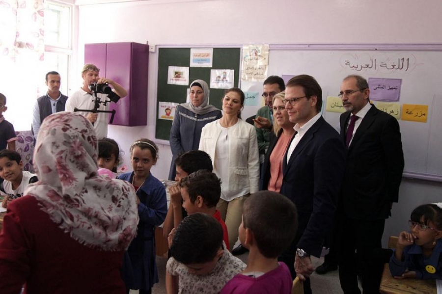 : زارت سمو الاميرة فيكتوريا ولية عهد مملكة السويد، اليوم الثلاثاء، مدرسة البقعة الابتدائية المختلطة الأولى إحدى مدارس وكالة الأمم المتحدة لإغاثة وتشغيل اللاجئين الفلسطينيين "الأونروا"، بمخيم البقعة.