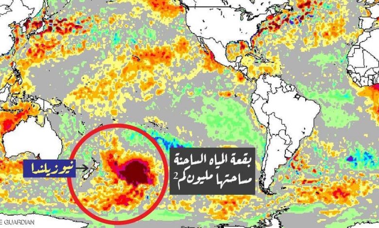 ظهرت على الخرائط الحرارية للكرة الأرضية، في المحيط الهادئ، قبالة شواطئ نيوزيلندا الشرقية تحديدا، بقعة حمراء عميقة وضخمة، تمتد على مساحة مليون كيلومتر مربع، أي حوالي 4 أضعاف مساحة نيوزيلندا.