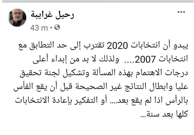 وقال غرايبة في تعليق له عبر منصات التواصل الاجتماعي، إنه يجب تشكيل لجنة تحقيق عليا وإبطال النتائج غير الصحيحة.