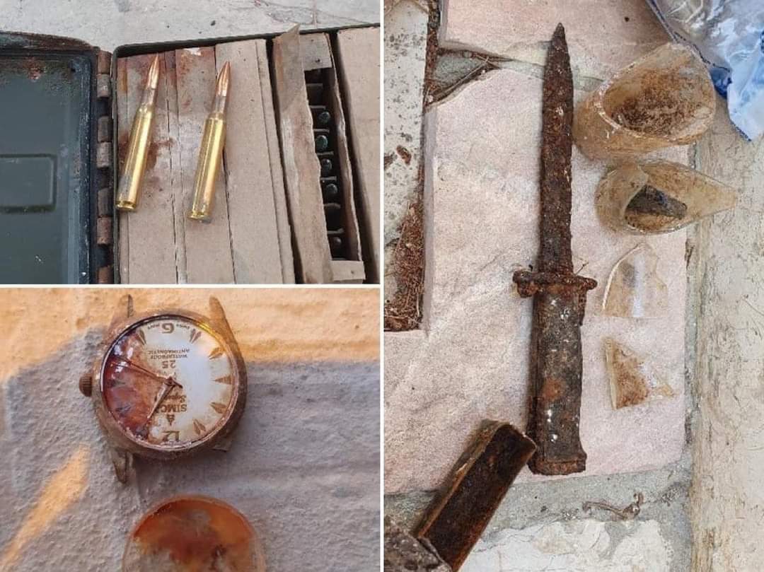 وبحسب القناة، فإنه خلال عملية الحفريات بالمنطقة وجد العمال الرُفات وبقربه سكينا وخاتما وساعة وخوذة لجندي من الجيش الأردني.