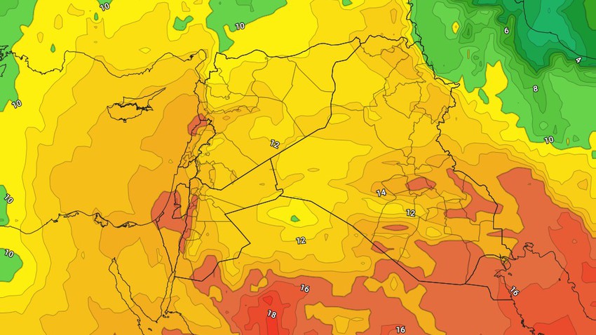 تعمق لمُنخفض البحر الأحمرعلى المملكة نهار السبت و ليلة السبت/الأحد و نهار الأحد يترافق مع طقس مُتقلب في مناطق عِدّة من المملكة ، يتمثل بهبوب رياح نشطة السرعة و جافة تزيد من الإحساس البرودة بشكل لافت ، كما ولا يُستبعد تشكل موجات غبارية تكون في بعض الأوقات كثيفة إلى حد حجب مدى الرؤية الأفقية في مناطق مختلفة و على فترات ، واعتباراً من مساء السبت تتهيأ الفرصة لهطول الأمطار بمشيئة الله في جنوب المملكة بما فيها ذلك مدينة العقبة قد تكون غزيرة أحياناً و يصحبها حدوث الرعد حينها ، و يُحتمل إمتداد بعض الأمطار في ساعات متأخرة من ليلة السبت/الأحد إلى مناطق أخرى في المملكة و لكن بشكل عشوائي
