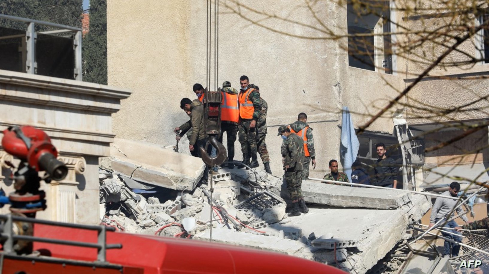 بدوره ذكر الجيش السوري أن المبنى الواقع في حي المزة غرب دمشق ويخضع لحراسة مشددة دمر بالكامل، مضيفا أن القوات الجوية الإسرائيلية أطلقت الصواريخ أثناء تحليقها فوق مرتفعات الجولان التي تحتلها إسرائيل.