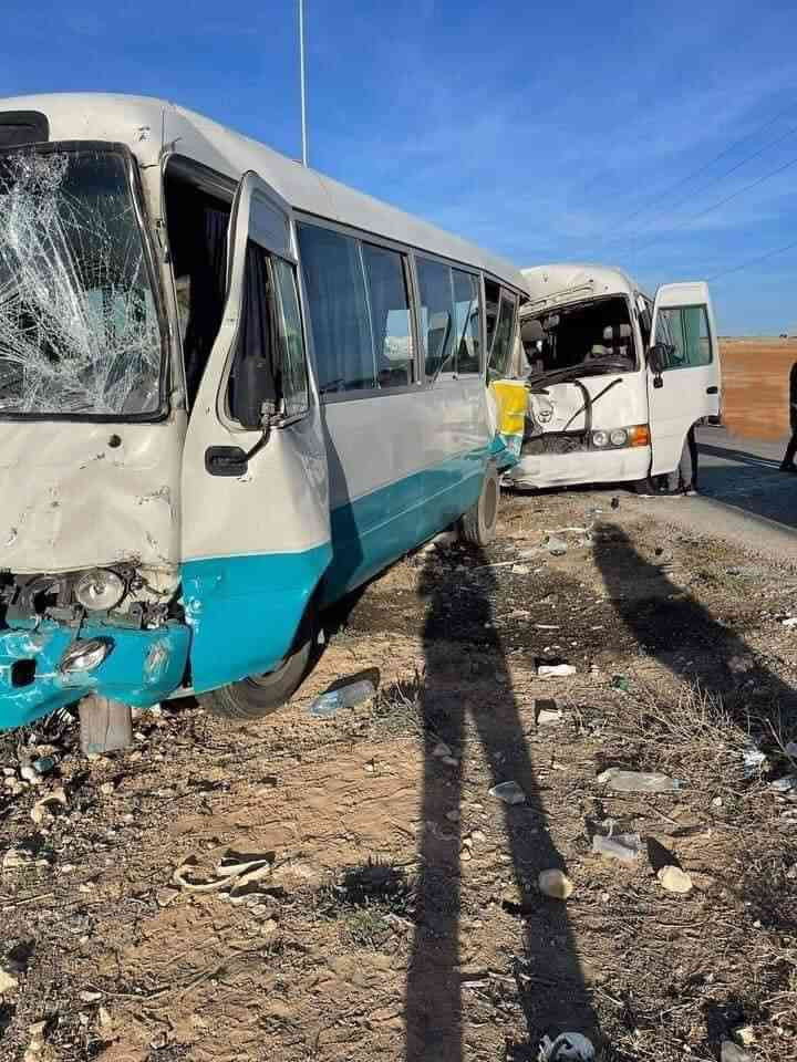 كما أصيب 7 أشخاص جراء حادث تصادم بين مركبة وباص يعمل على خط عمان - جرش، في منطقة جسر سلحوب، بمحافظة البلقاء.
