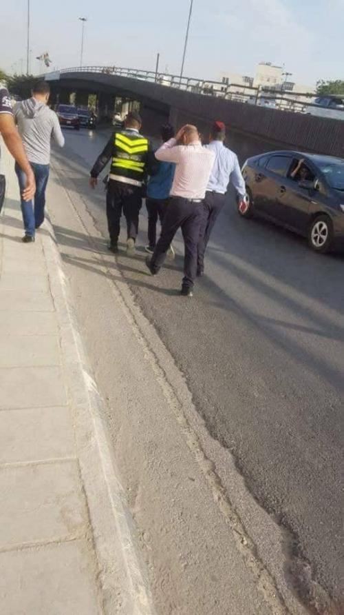 حيث تم ملاحقة الشاب وضبطه وتقييد يديه من الخلف من قبل رجال الامن العام بعد ان حاول مقاومتهم والهرب الا انه لم يتمكن من ذلك وتم اقتياده للمركز الامني لاتخاذ الاجراءات اللازمة بحقه وتنفيذ القانون .