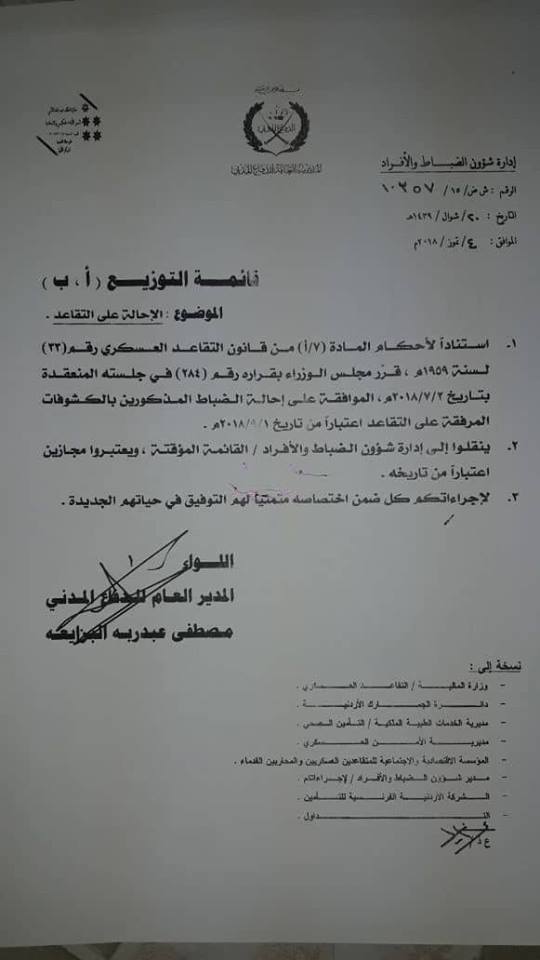 قرر مجلس الوزراء احالة عدد من ضباط الدفاع المدني الى التقاعد وهم :
