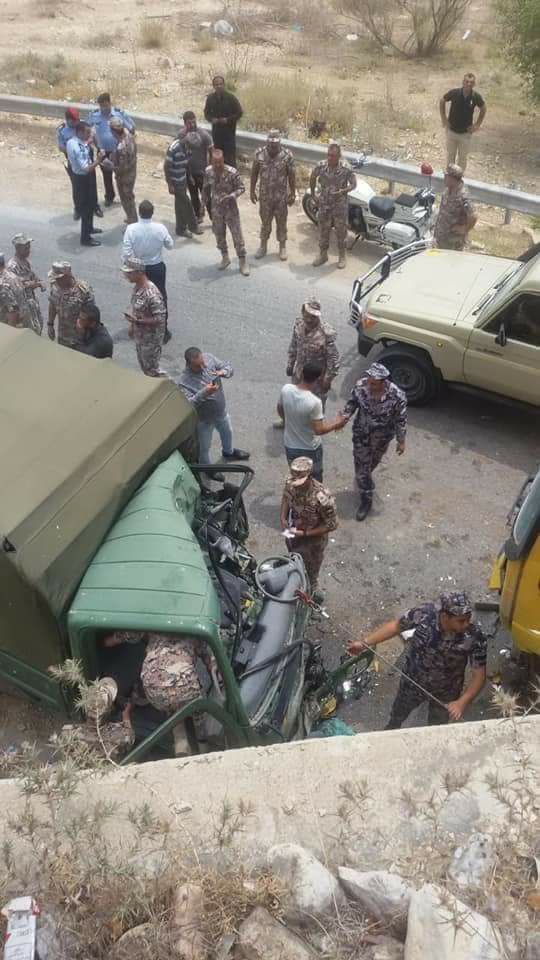 تعاملت كوادر الإنقاذ في مركز دفاع مدني الشونه الشمالية مع حادث تصادم ظهر اليوم قرب جسر صما ما بين قلاب ومركبة بك اب ديانا عسكرية