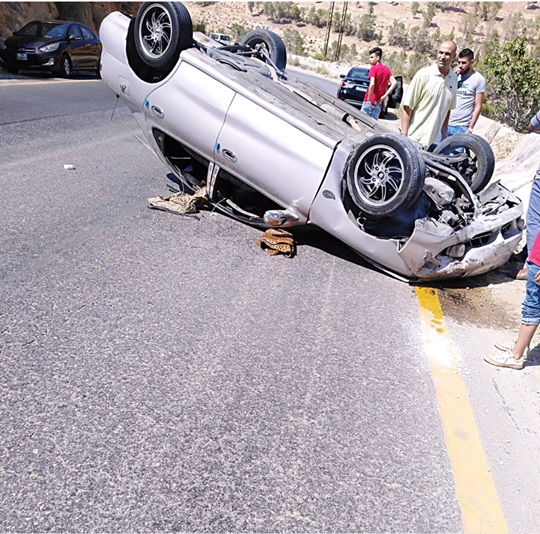 بالصوره .. نجاة عائلة من حادث سير مروع وقع ظهر اليوم على طريق أم جوزة الرممين