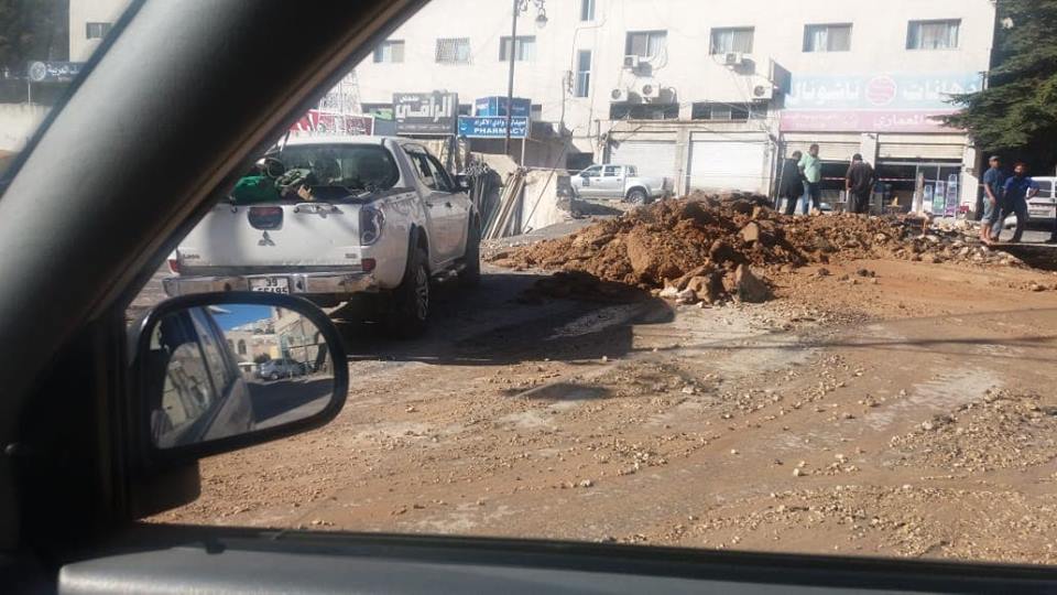 انفجر خط مياة فجر اليوم في منطقة وادي الاكراد / احد احياء مدينة السلط
